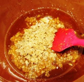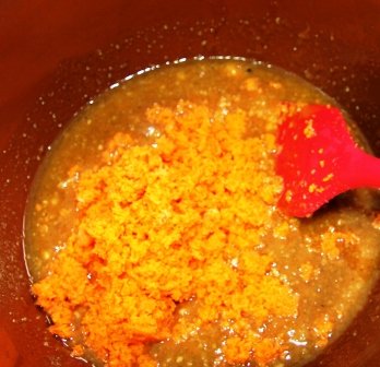 EN UN CAZO MEZCLAR LOS INGREDIENTES (LA RALLADURA DE UNA ZANAHORIA, EL AZUCAR Y EL AGUA HASTA QUE EL LÍQUIDO SE EVAPORE Y LAS RALLADURAS DE ZANAHORIA QUEDE CARAMELIZADA.