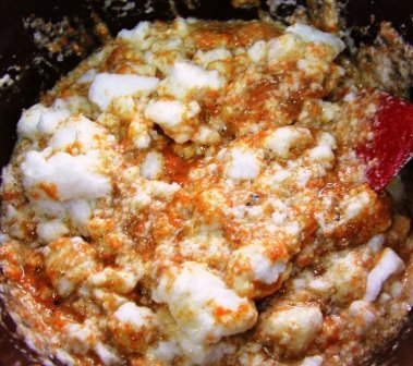 AÑADIR LAS NUECES Y LAS ZANAHORIAS A ESTA MEZCLA, DÁNDOLES VUELTAS.