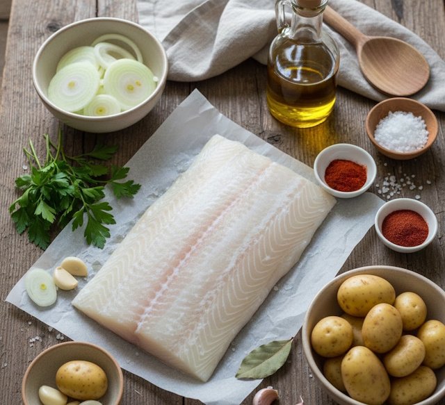 • El bacalao desalado es el protagonista. Su textura firme y sabor delicado son cruciales.