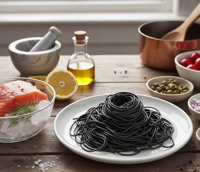 - Los Espaguetis Negros con Salmón Fresco. es un plato que transforma un simple menú de pasta, en una propuesta sofisticada y memorable, ideal tanto para una cena especial.