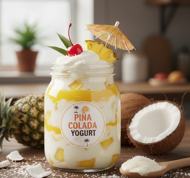 • Yogurt de Piña Colada (Coco, Piña y Ron):